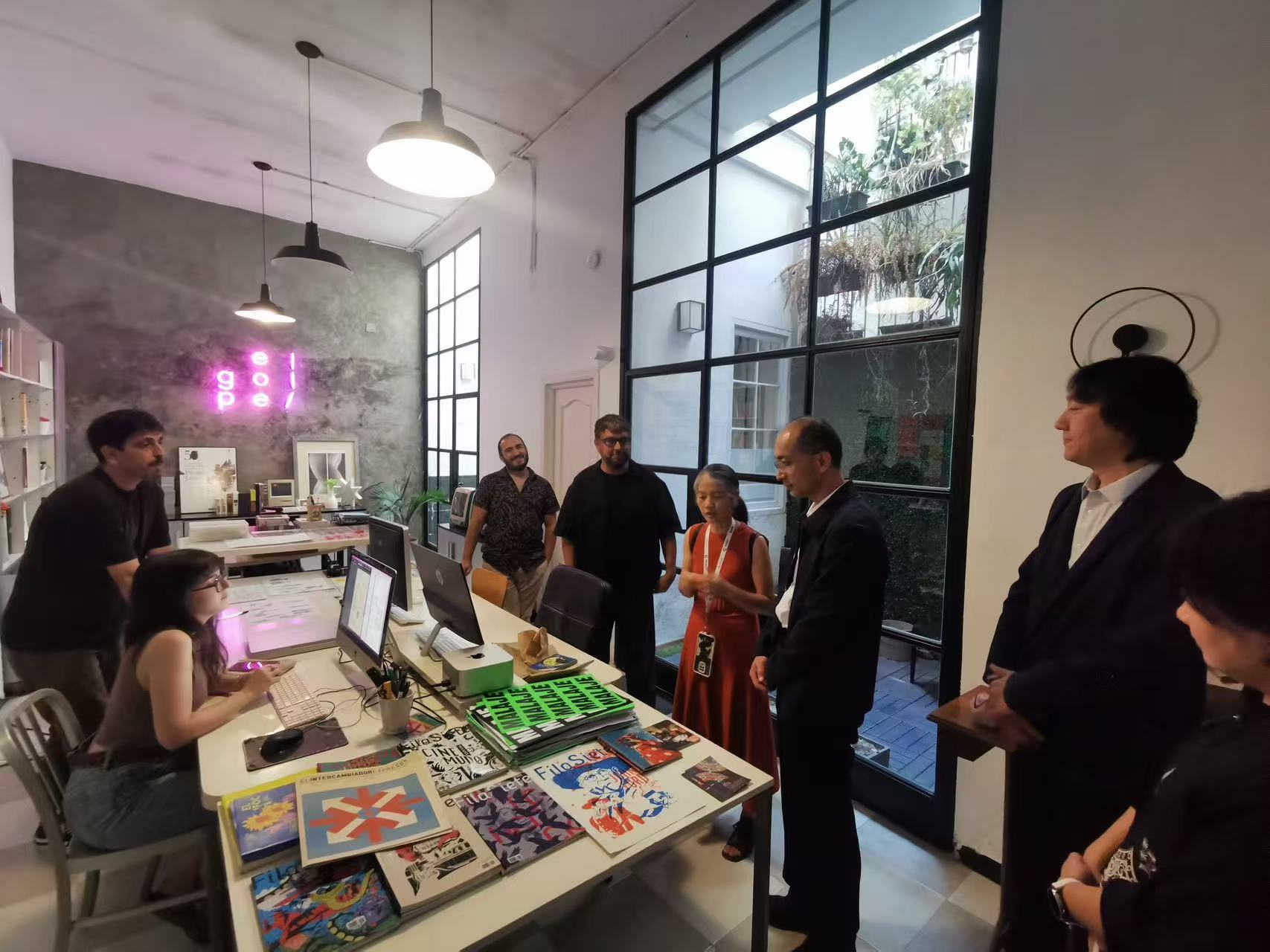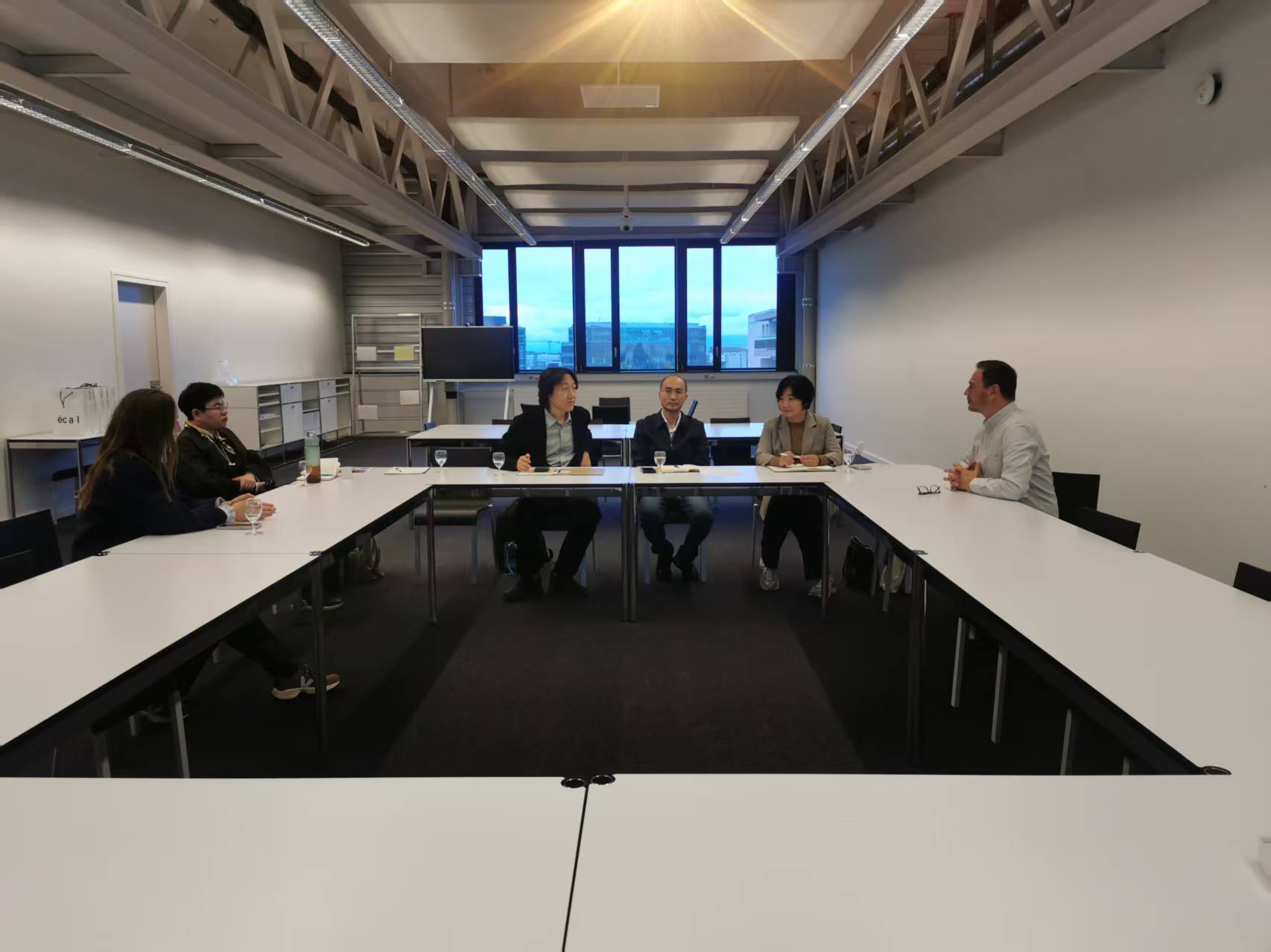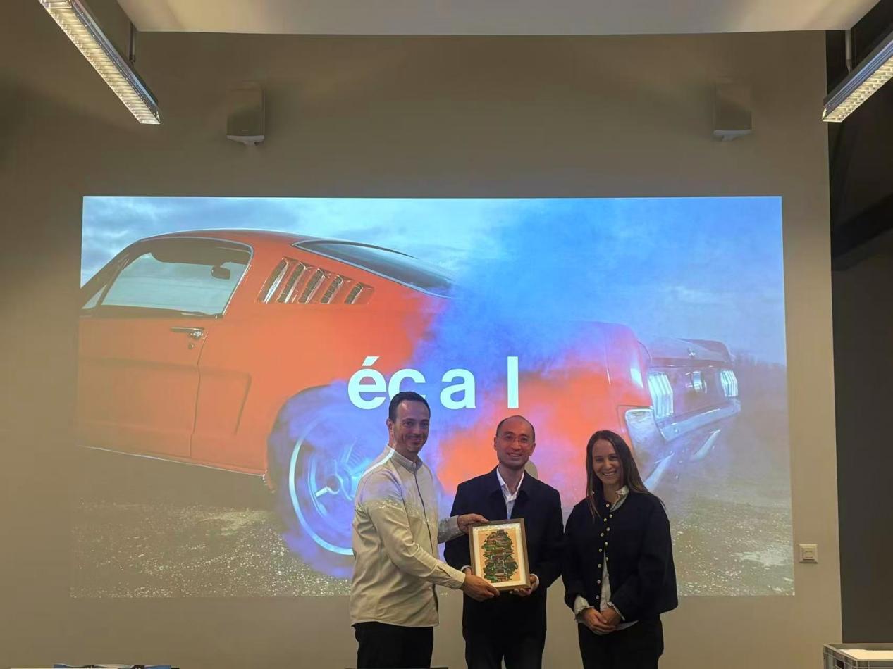 在洛桑艺术设计大学(ECAL/Ecole cantonale d’art de Lausanne)期间,代表团在国际事务负责人格罗斯皮龙·约翰娜(Grospiron Johanna)及平面设计负责人贝内代托·安杰洛(Benedetto Angelo)的带领下参观教室、实验室和展厅。随后开展座谈,双方对本校围绕设计艺术教育上的办学特色与经验成果进行了交流,并针对艺术学科课程共建、学术交流与策展等议题深入交流。双方在艺术人才培养方面的经验,提出在学术交流、联合创作等领域开展合作的建议,初步达成合作意向,为后续深度合作奠定基础,推动两校在教育、艺术、出版、影视等领域合作迈向新台阶。