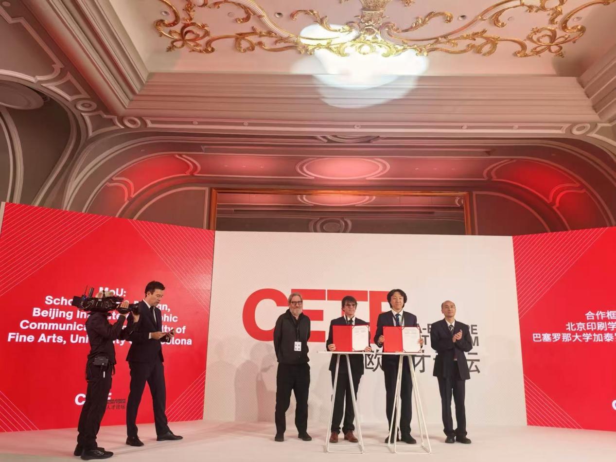 北京印刷学院设计艺术学院与巴塞罗那大学加泰罗尼亚高等电影视听学院 (ESCAC, University of Barcelona)正式签署合作备忘录。双方将在硕博联合培养、学术交流、科研项目合作等方面建立全方位合作关系,共同探索中欧在创意设计与数智出版领域的人才培养新模式。