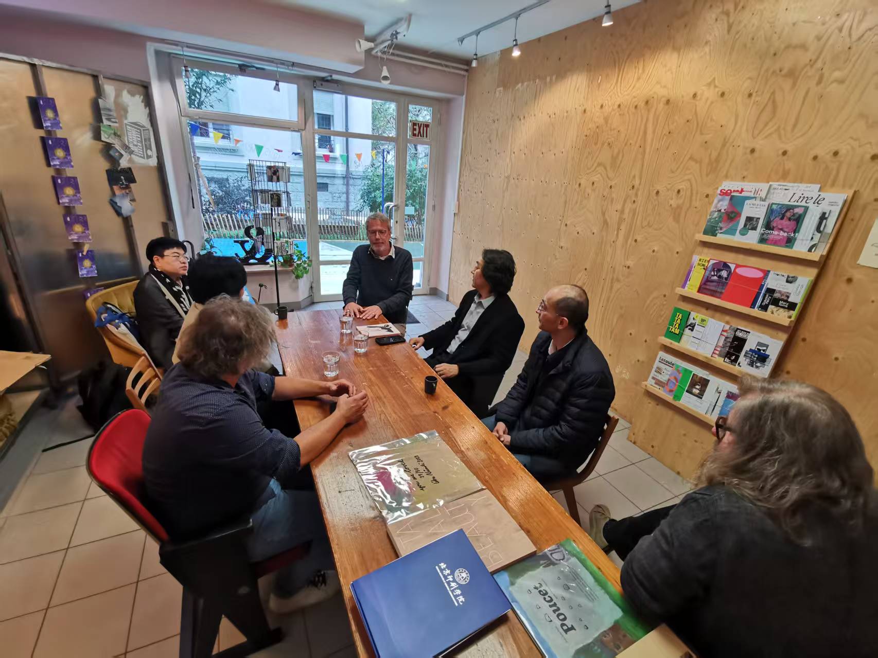 张鑫书记一行还访问了日内瓦大学孔子学院以及Hélice Hélas出版社及Art&Fiction洛桑办事处。分别与日内瓦大学孔子学院中方院长郭春宁、出版人斯特凡·博翁(Stéphane Bovon)、斯特凡·弗雷茨(Stephane Fretz)和克里斯蒂安·佩莱(Christian Pellet)进行了座谈,就出版物设计学术成果海外推广、出版物设计人才联合培养、中国文化交流活动策划、师生短期交流项目落地等议题深入磋商,达成一致共识,并正式签署合作备忘录。