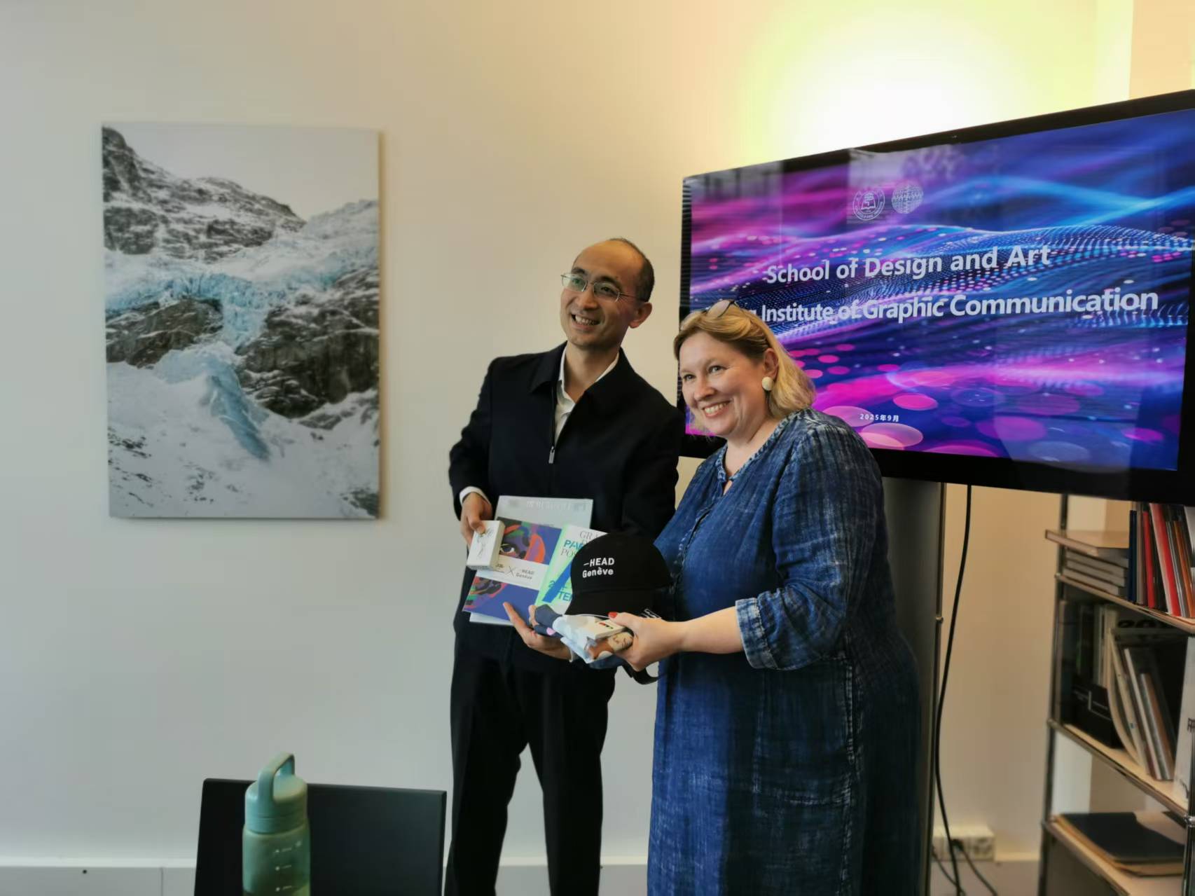 在日内瓦艺术设计大学(HEAD-Genève/Haute Ecole d’art et de design de Genève),张鑫书记一行受到校长拉达·乌姆泰特(Lada Umtätter)和国际事务负责人泽坎·奥德丽(Zecchin Audrey)热情欢迎,双方围绕两校的办学特色、以及在设计与艺术实践和跨学科领域研究的成果与经验进行深入交流。随后泽坎·奥德丽(Zecchin Audrey)陪同参观艺术设计教室、教授工作室和师生作品展厅。空间与传达方向学科负责人阿诺·马蒂斯(Arno Mathies)展示了本专业在跨学科领域的设计项目与成果。双方就期望合作的具体内容展开细化讨论,明确推进后续合作方案落地,正式达成合作意向。